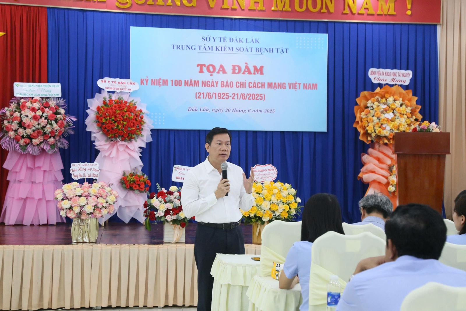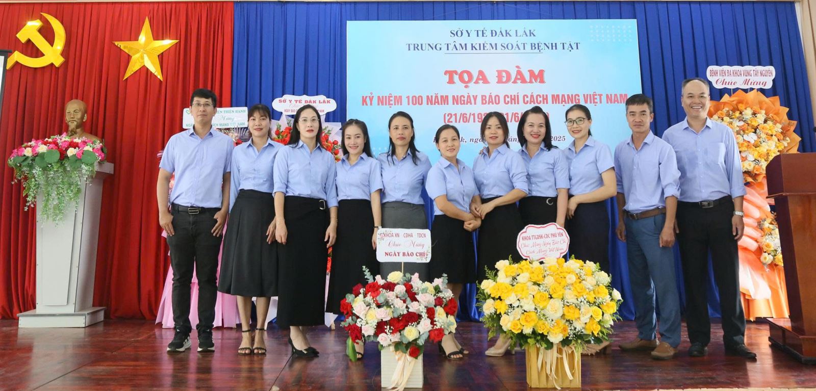Lãnh đạo ngành y tế và lãnh đạo Trung tâm KSBT gặp mặt cán bộ viên chức Khoa TTGDSK tại buổi Tọa đàm kỉ niệm 100 năm ngày Báo Chí Cách mạng Việt Nam (21/6/1925-21/6/2025).