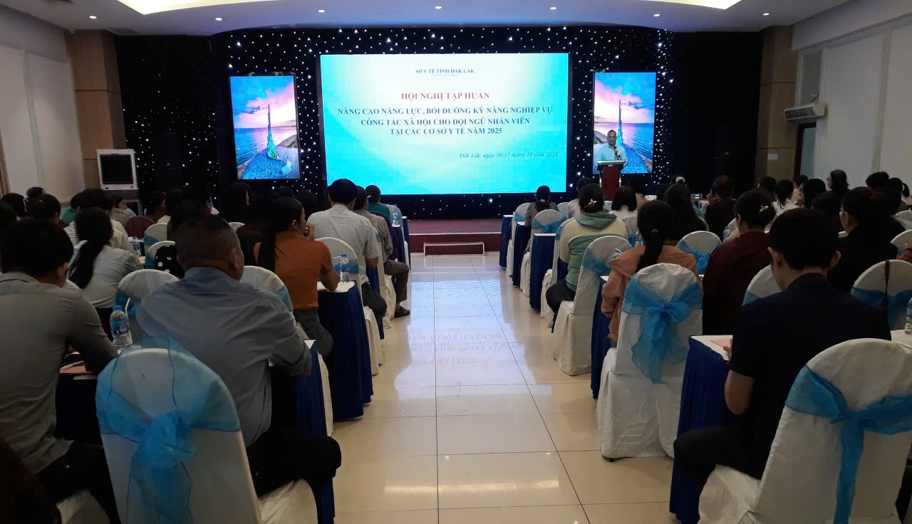 Sáng 16/10/2025, tại phường Tuy Hòa, Sở Y tế tỉnh Đắk Lắk đã khai mạc Hội nghị tập huấn Nâng cao năng lực, bồi dưỡng kỹ năng nghiệp vụ công tác xã hội cho đội ngũ nhân viên tại các cơ sở y tế năm 2025. Tham gia Hội nghị Tập huấn có 120 đại biểu là nhân viên làm công tác xã hội hoặc kiêm nhiệm công tác xã hội trong các Bệnh viện, Trung tâm Y tế và các Trạm Y tế xã, phường (khu vực phía Đông tỉnh Đắk Lắk).