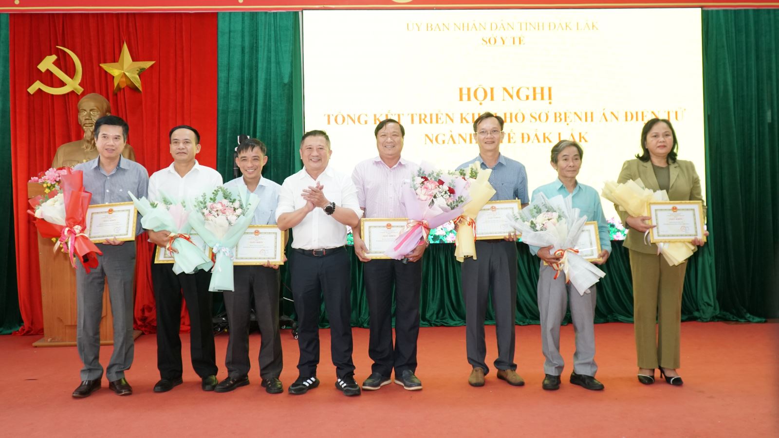 Ghi nhận những nỗ lực và thành tích nổi bật trong công tác triển khai hồ sơ bệnh án điện tử, tại hội nghị, Sở Y tế tỉnh Đắk Lắk đã công bố Quyết định khen thưởng cho các tập thể và cá nhân có thành tích xuất sắc trong quá trình thực hiện nhiệm vụ. Cụ thể, 07 tập thể được biểu dương gồm: Bệnh viện Mắt Phú Yên, Bệnh viện Y học Cổ truyền Phú Yên, Bệnh viện Đa khoa Buôn Ma Thuột, Trung tâm Y tế Sơn Hòa, Trung tâm Y tế Ea Kar, Trung tâm Y tế Krông Pắk và Bệnh viện Đại học Y Dược Buôn Ma Thuột. Đồng thời, 05 cá nhân tiêu biểu cũng được khen thưởng gồm: ông Trần Anh Dũng – Giám đốc Bệnh viện Đa khoa Phú Yên; bà Nguyễn Thị Kim Thành – Giám đốc Bệnh viện Đa khoa khu vực 333; bà Nguyễn Thị Phương Lan – Giám đốc Trung tâm Y tế Sông Hinh; bà Lê Thị Thủy – Giám đốc Trung tâm Y tế M'Đrắk; và ông Võ Lương Vũ – Chuyên viên Văn phòng Sở Y tế. Việc khen thưởng kịp thời thể hiện sự ghi nhận của ngành Y tế đối với những đóng góp thiết thực của các tập thể, cá nhân trong công cuộc chuyển đổi số ngành y tế, đồng thời là động lực để các đơn vị tiếp tục phấn đấu, hoàn thành tốt nhiệm vụ trong thời gian tới./.
