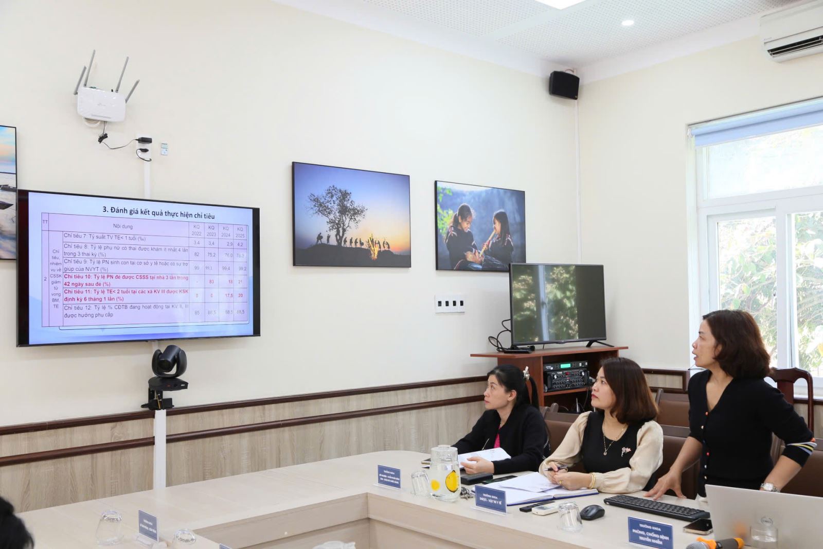 Tại buổi làm việc, đại diện Trung tâm Kiểm soát bệnh tật báo cáo kết quả triển khai Dự án 7 với các nội dung: Hoạt động chăm sóc dinh dưỡng 1.000 ngày đầu đời cho bà mẹ, trẻ nhỏ và trẻ em suy dinh dưỡng vùng đồng bào DTTS và miền núi; hoạt động chăm sóc sức khỏe sinh sản giảm tử vong bà mẹ, trẻ em; công tác tuyên truyền, vận động, hoạt động truyền thông thay đổi hành vi về chăm sóc sức khỏe, dinh dưỡng bà mẹ, trẻ em tại vùng đồng bào dân tộc thiểu số…