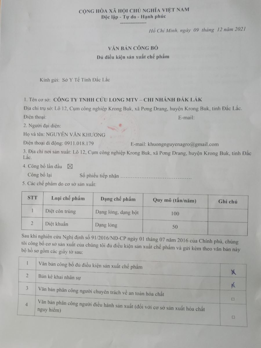 Công ty TNHH Cửu Long MTV Chi nhánh Đắk Lắk