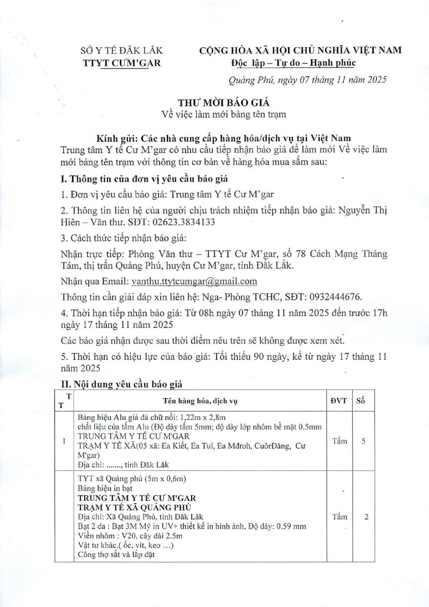 Thông báo THÔNG BÁO: TTYT CƯ M'GAR CÓ NHU CẦU TIẾP NHẬN BÁO GIÁ ĐỂ MUA SẢN PHẨM DINH DƯỠNG CHO PHỤ NỮ MANG THAI VÀ TRẺ EM TỪ 06-23 THÁNG TUỔI( LẦN 2)THÔNG BÁO: TTYT CƯ M'GAR CÓ NHU CẦU TIẾP NHẬN BÁO GIÁ ĐỂ MUA SẮM THIẾT BỊ, DỤNG CỤ PCCC&CNCH CỦA TTYT CƯ M'GARTHÔNG BÁO: TTYT CƯ M'GAR CÓ NHU CẦU TIẾP NHẬN BÁO GIÁ ĐỂ MUA SẢN PHẨM DINH DƯỠNG CHO PHỤ NỮ MANG THAI VÀ TRẺ EM TỪ 06-23 THÁNG TUỔITHÔNG BÁO: TTYT CƯ M'GAR CÓ NHU CẦU TIẾP NHẬN BÁO GIÁ ĐỂ LÀM MỚI BẢNG TÊN TRẠM Y TẾ XÃ Văn bản chỉ đạo điều hành Liên kết web -- Chọn liên kết -- Bộ Y tế UBND tỉnh Đắk Lắk Cục Quản lý KCB - Bộ Y tế Cục Quản lý Dược - Bộ Y tế Trung tâm Truyền thông GDSK Trung ương Vụ TCCB - Bộ Y tế