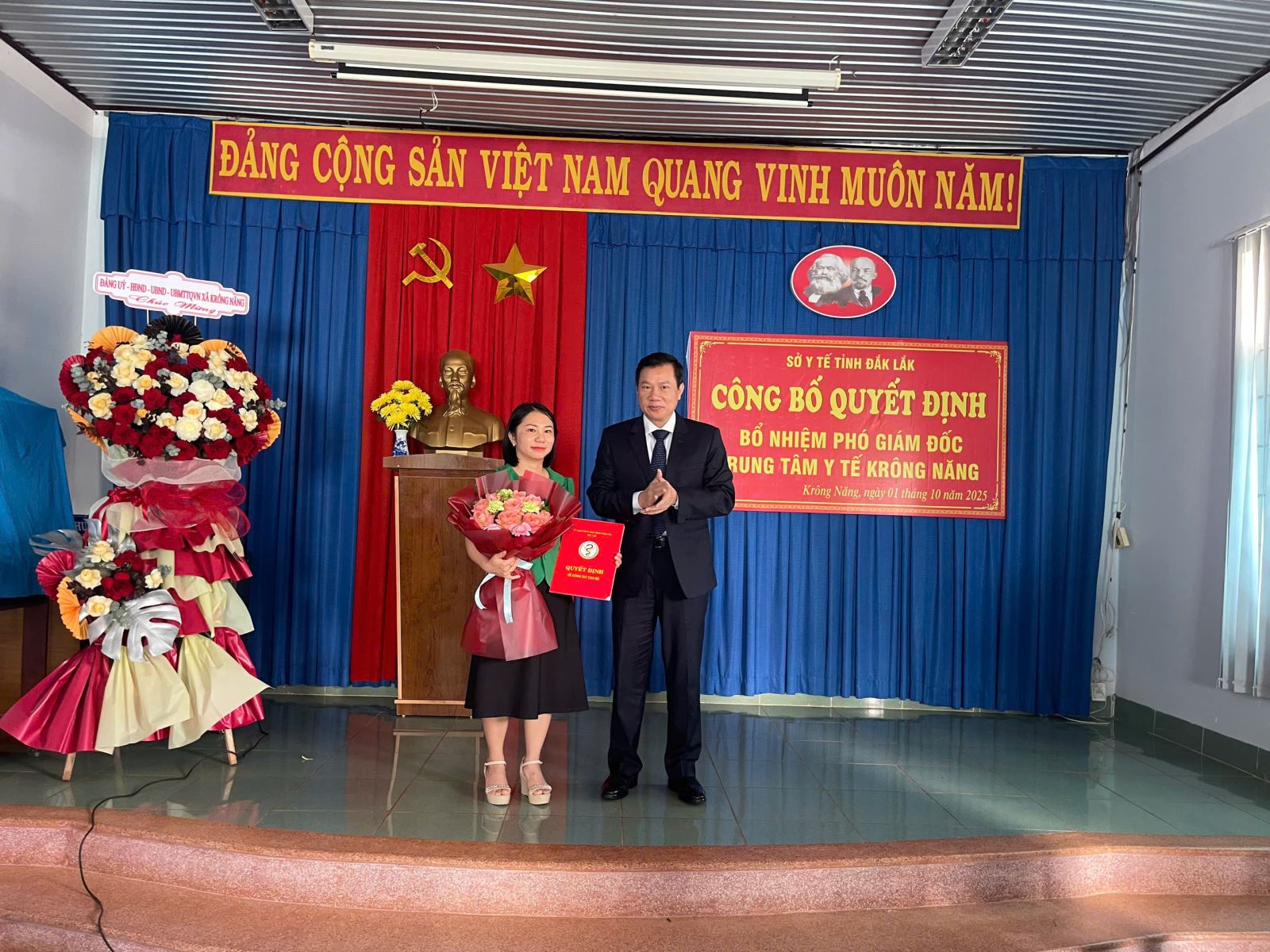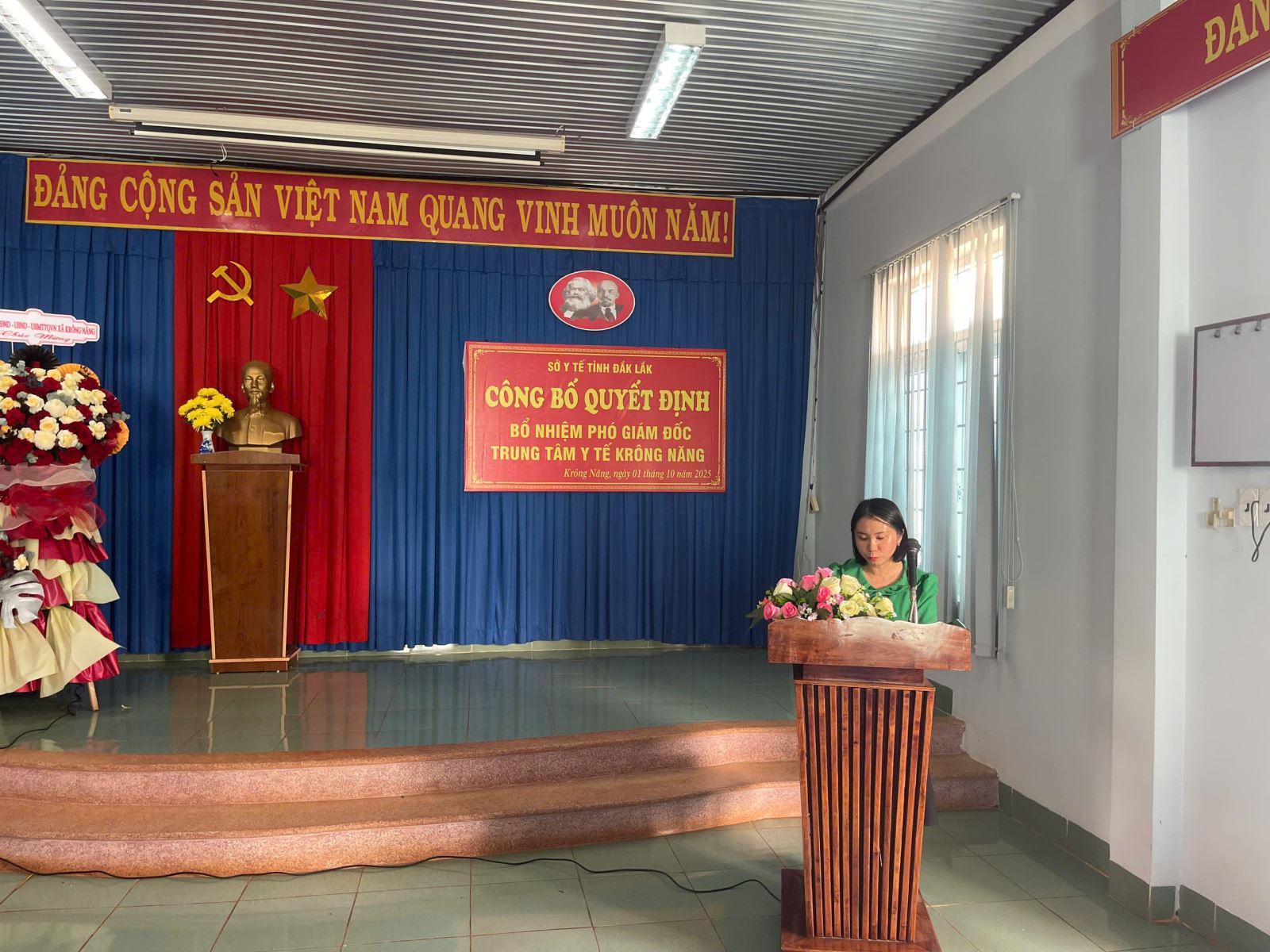 Tại Hội nghị, đồng chí Hoàng Nguyên Duy – Phó Giám đốc Sở Y tế Đắk Lắk đã công bố và trao Quyết định bổ nhiệm bà Trần Thị Thùy Linh giữ chức vụ Phó Giám đốc Trung tâm Y tế Krông Năng.