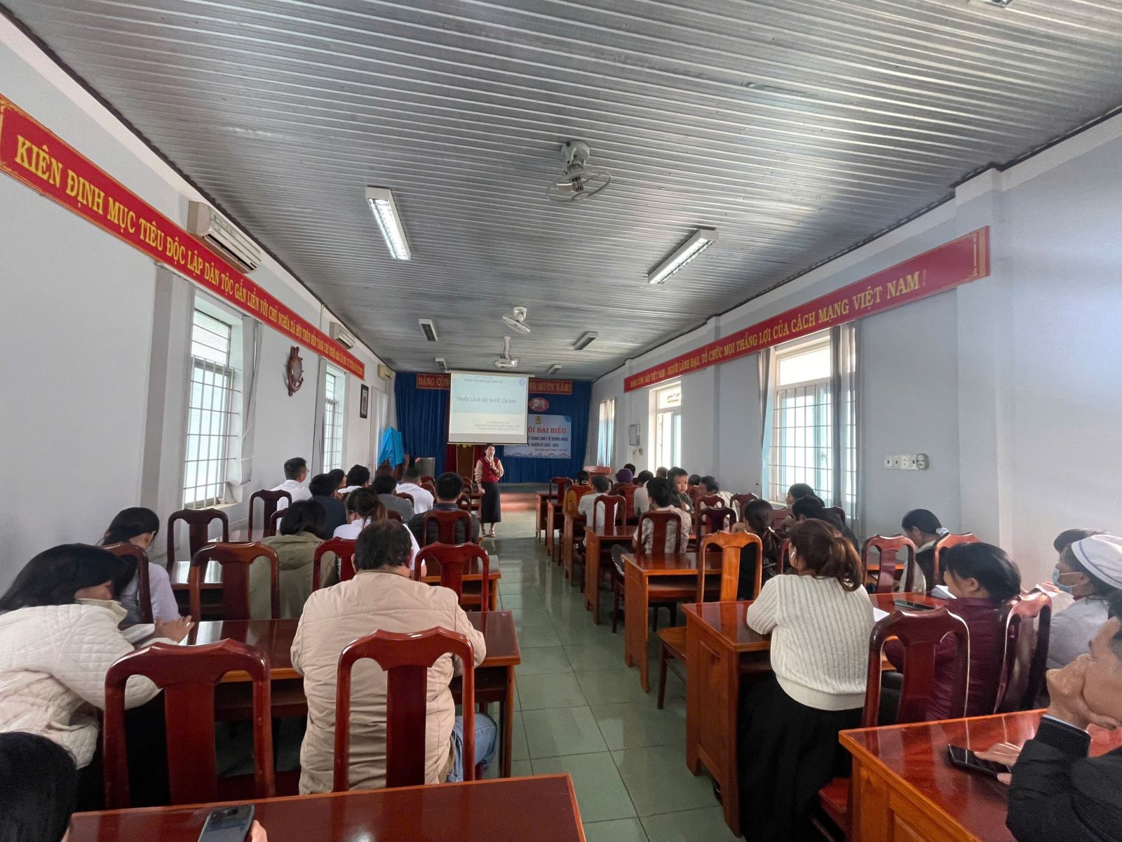 Thực hiện Kế hoạch số 139/KH-UBND ngày 13/6/2025 của UBND tỉnh Đắk Lắk về hoạt động phòng, chống tác hại của thuốc lá năm 2025 và Hợp đồng trách nhiệm số 68/2025/HĐ-QPCTHTL-DAKLAK ngày 17/3/2025, chiều ngày 28/11/2025, Trung tâm Y tế Krông Năng phối hợp với Trung tâm Kiểm soát bệnh tật tỉnh Đắk Lắk tổ chức buổi truyền thông trực tiếp về phòng, chống tác hại của thuốc lá cho cán bộ y tế, bệnh nhân và người nhà bệnh nhân tại đơn vị.