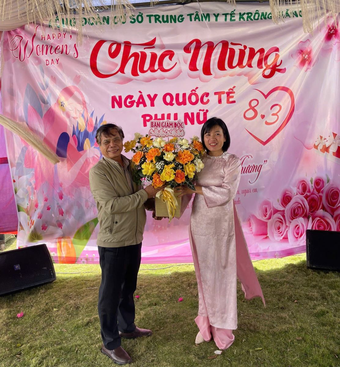 Hình ảnh: Đ/c Trần Ngọc Anh – Giám đốc TTYT tặng hoa chúc mừng
