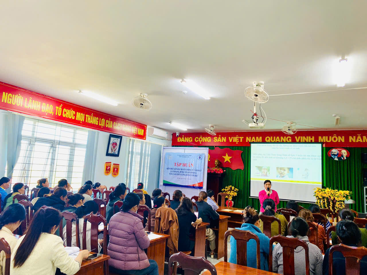 Nhằm nâng cao kiến thức, kỹ năng truyền thông cho đội ngũ cộng tác viên dân số tại cơ sở, góp phần thực hiện có hiệu quả gói dịch vụ y tế cơ bản do Bộ Y tế quy định, hôm nay, ngày 14 tháng 11 năm 2025 Trung tâm Y tế Ea H’leo phối hợp với Phòng Dân số - Sở Y tế tỉnh Đắk Lắk tổ chức tập huấn cho cộng tác viên dân số ở các thôn, buôn trên địa bàn về Kiến thức, kỹ năng truyền thông về lợi ích tầm soát một số bệnh tật trước sinh và sơ sinh theo gói dịch vụ cơ bản của BYT quy định.
