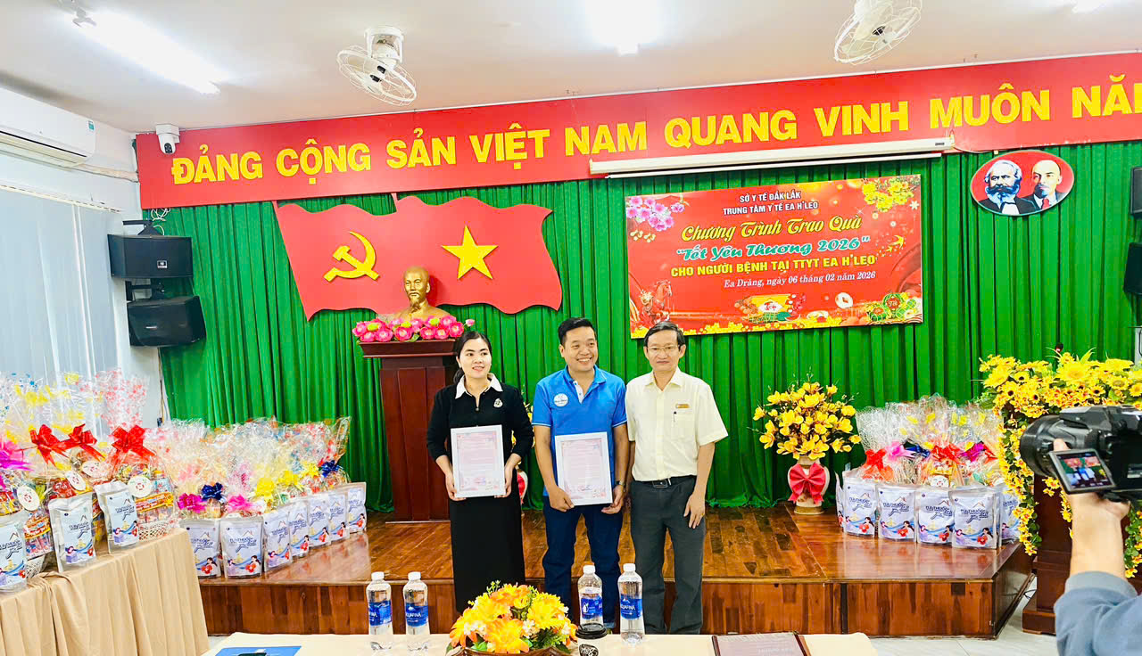 Trong không khí phấn khởi, tự hào khi toàn Đảng, toàn dân, toàn quân ta vừa long trọng chào mừng thành công tốt đẹp của Đại hội đại biểu toàn quốc lần thứ XIV của Đảng – sự kiện chính trị trọng đại, định hướng cho sự phát triển bền vững của đất nước trong giai đoạn mới; đồng thời, Xuân mới Bính Ngọ 2026 đang về mang theo niềm vui, niềm tin và hy vọng. Với tinh thần quan tâm, chia sẻ khó khăn, động viên tinh thần cho người bệnh đang điều trị tại Trung tâm Y tế nhân dịp Tết Nguyên Đán Bính Ngọ 2026 nhằm phát huy tinh thần " Tương thân tương ái", "Lá lành đùm lá rách", ngày 06/02/2026 nhằm ngày 19 tháng Chạp năm Ất Tỵ, Trung tâm Y tế Ea H’leo tổ chức buổi trao quà "Tết Yêu Thương 2026" nhằm chia sẻ khó khăn, động viên tinh thần cho người bệnh nhân dịp Tết Bính Ngọ 2026.