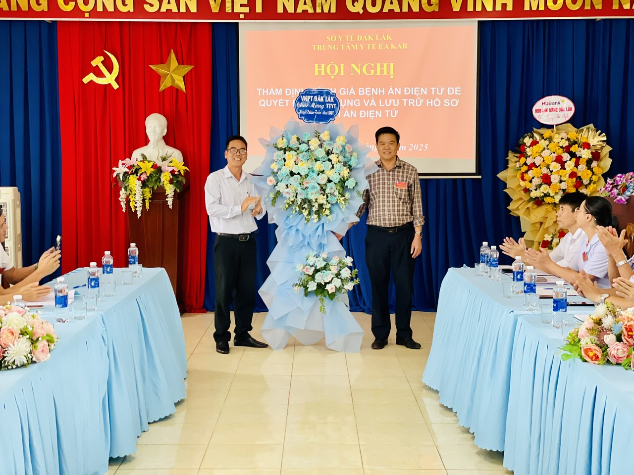 Phát biểu tại hội nghị, BSCKII. Phạm Minh Hữu – Phó Giám đốc Sở Y tế tỉnh Đắk Lắk đánh giá cao sự chủ động, nghiêm túc của Trung tâm Y tế Ea Kar trong triển khai bệnh án điện tử. Đồng chí nhấn mạnh: “Việc ứng dụng bệnh án điện tử là bước đi thiết thực trong chuyển đổi số ngành Y tế, góp phần nâng cao chất lượng khám chữa bệnh, minh bạch thông tin, giảm thủ tục hành chính và phục vụ người dân ngày càng tốt hơn.”