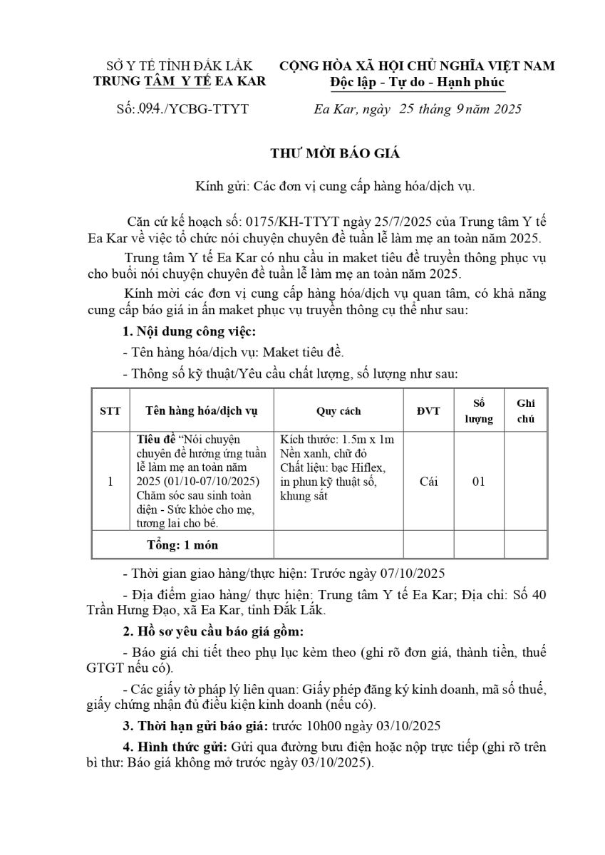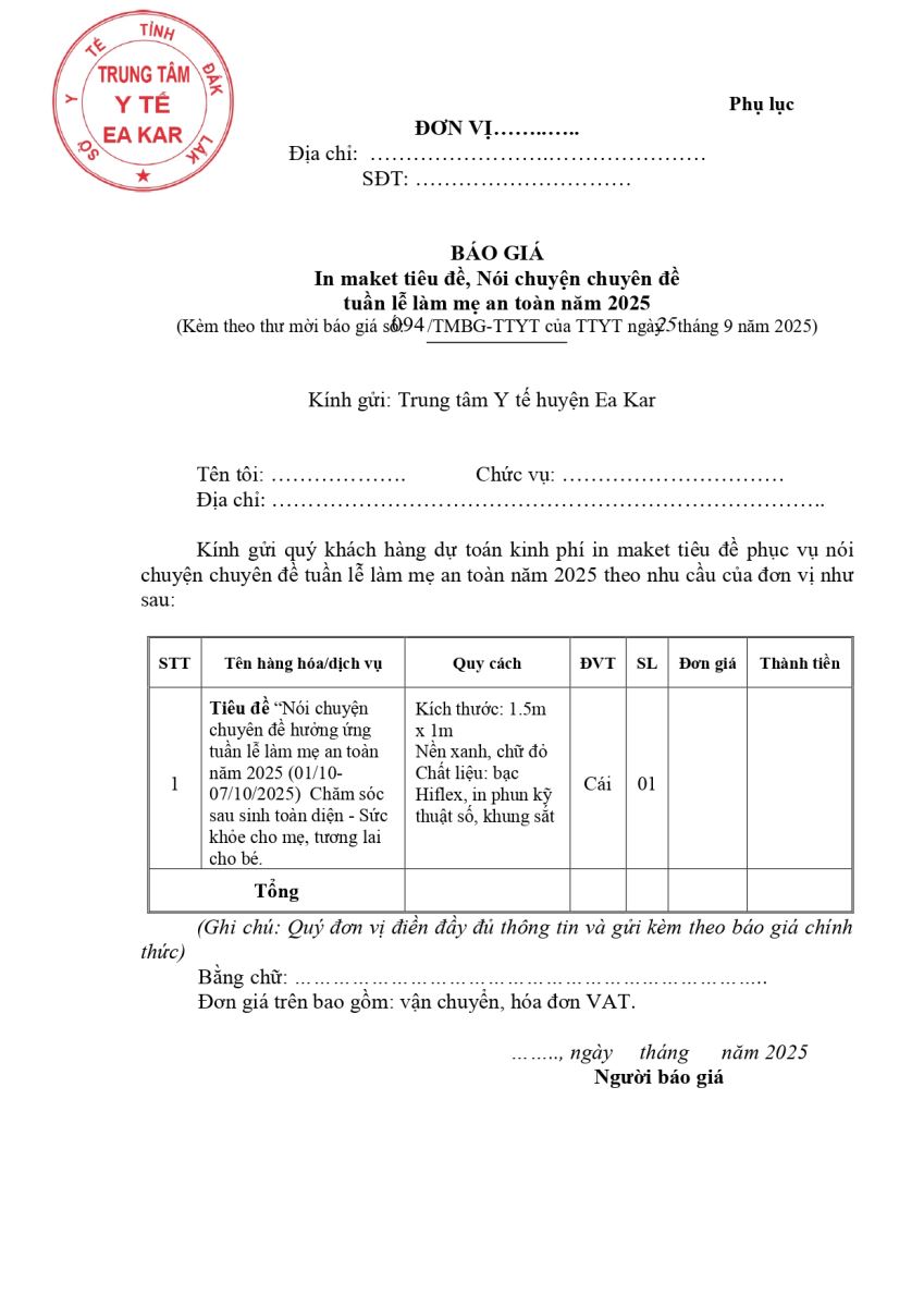 Chuyên mục CÁC ĐƠN VỊ TRỰC THUỘCCÁC ĐƠN VỊ TRỰC THUỘC Khoa PhòngKhoa Phòng TRUYỀN THÔNG GDSKTRUYỀN THÔNG GDSK TIÊM CHỦNGTIÊM CHỦNG GIÁ KHÁM BỆNH - DVKT - THUỐCGIÁ KHÁM BỆNH - DVKT - THUỐC COVID 19 HƯỚNG DẪN KHAI BÁO Y TẾ ĐIỆN TỬ QR-CODE Văn bản chỉ đạo điều hành Văn bản SỐ 33/ QĐ-TTYTQUYẾT ĐỊNH THÀNH LẬP TRANG THÔNG TIN ĐIỆN TỬ Bảng giá Thuốc và VTYTBảng giá dịch vụ Phẫu thuật - Thủ thuậtBảng giá dịch vụ Xét nghiệmBảng giá dịch vụ Chẩn đoán hình ảnhBảng giá dịch vụ Khám bệnhĐẢNG - ĐOÀN THỂBẢNG GIÁ KHÁM BỆNH Liên kết web -- Chọn liên kết -- Bộ Y tế UBND tỉnh Đắk Lắk Cục Quản lý KCB - Bộ Y tế Cục Quản lý Dược - Bộ Y tế Trung tâm Truyền thông GDSK Trung ương Vụ TCCB - Bộ Y tế