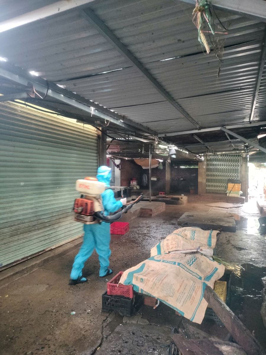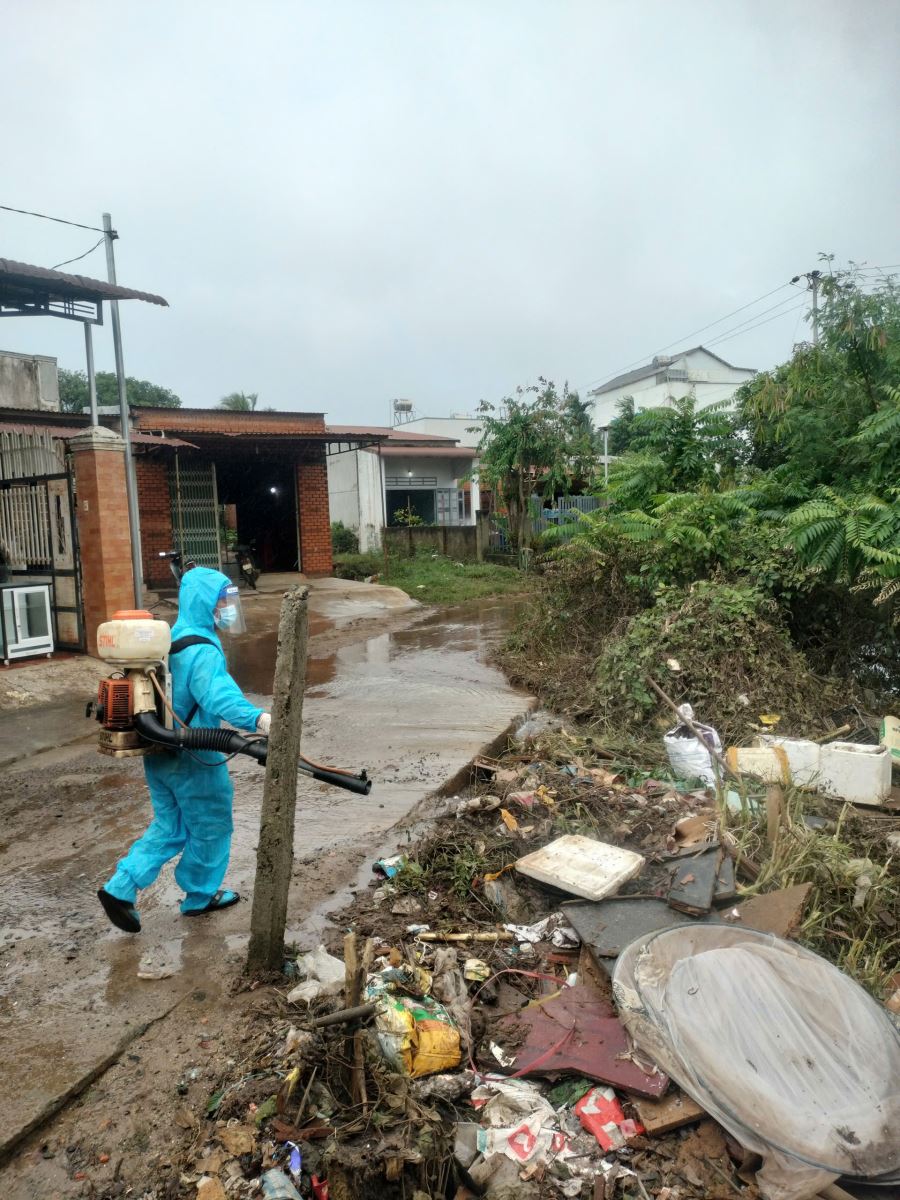 Hoạt động phun hóa chất khử trùng môi trường tại các hộ gia đình, nơi người dân cư trú, khu chợ bị ngập lụt bởi mưa lũ được thực hiện kịp thời ngay sau khi nước rút nhằm phòng chống các dịch bệnh truyền nhiễm có thể tồn tại trong nước lũ, đồng thời xử lý giếng đảm bảo môi trường sạch sẽ, an toàn cho người dân sớm ổn định cuộc sống và sinh hoạt.