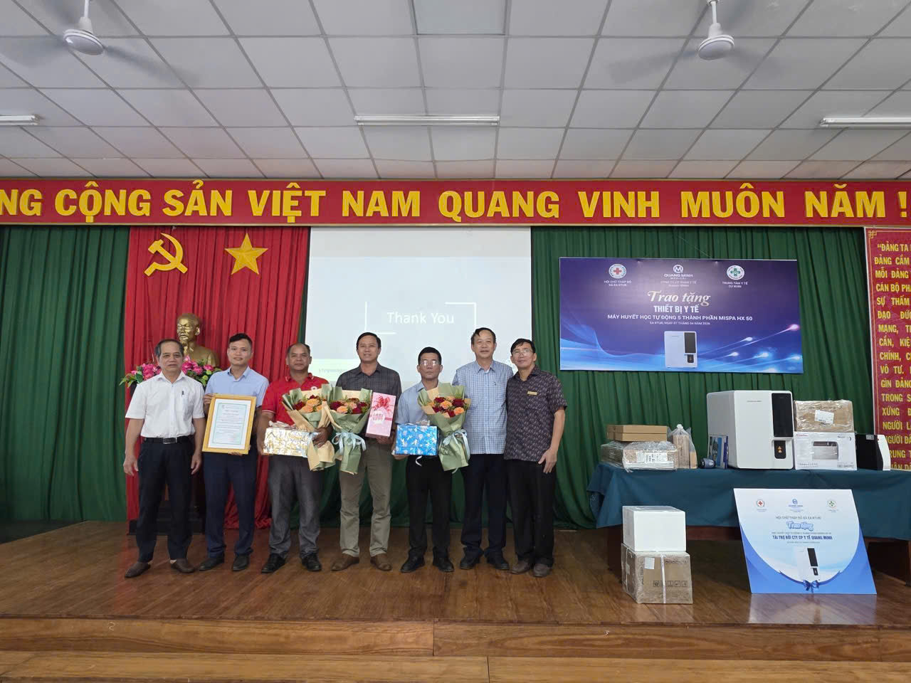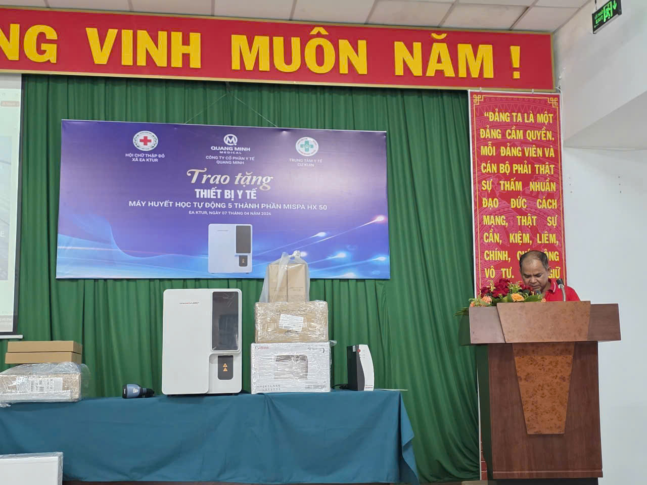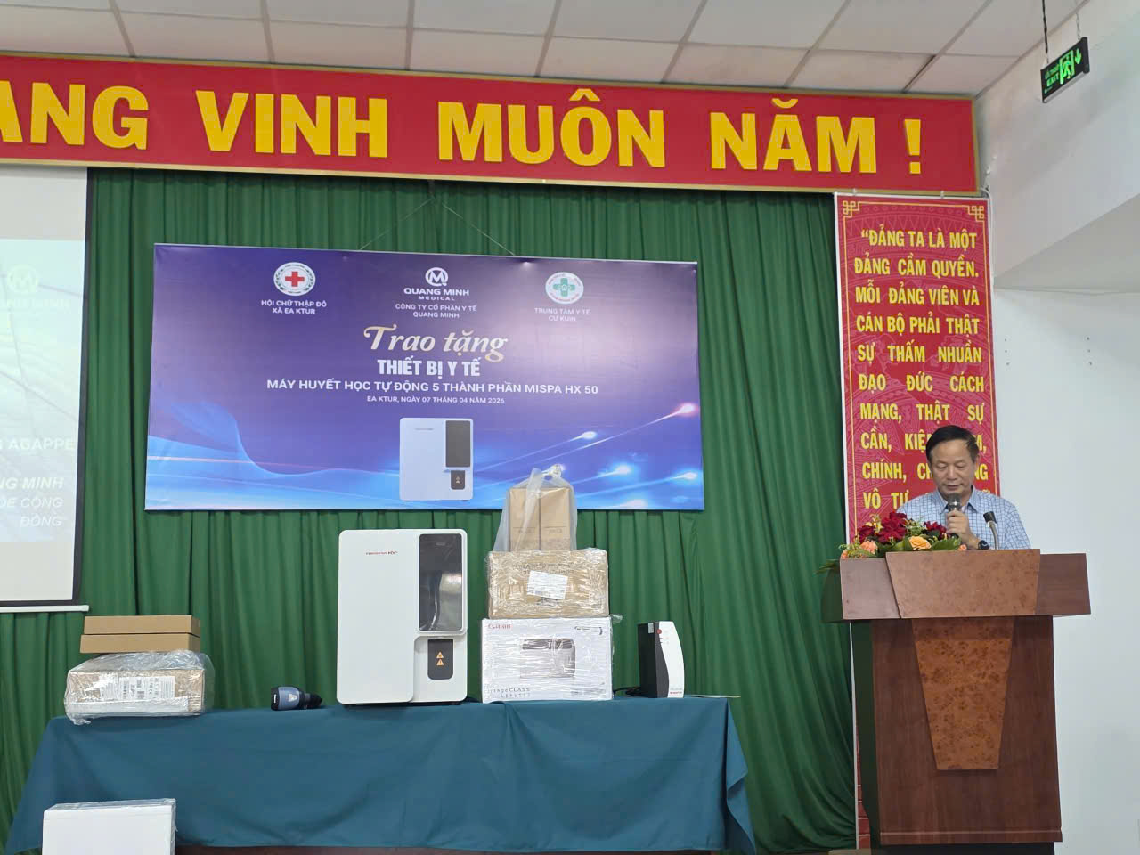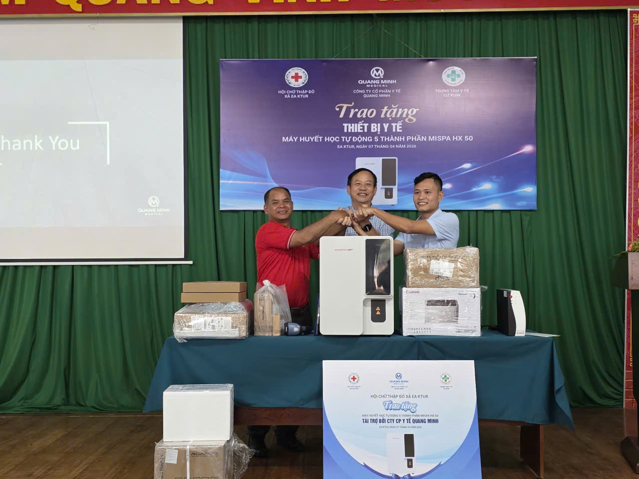 Chiều ngày 07/4/2026 công ty cổ phần y tế Quang Minh tổ chức trao tặng máy huyết học tự động 5 thành phần Mispa HX50 cho Trung tâm y tế Cư Kuin.