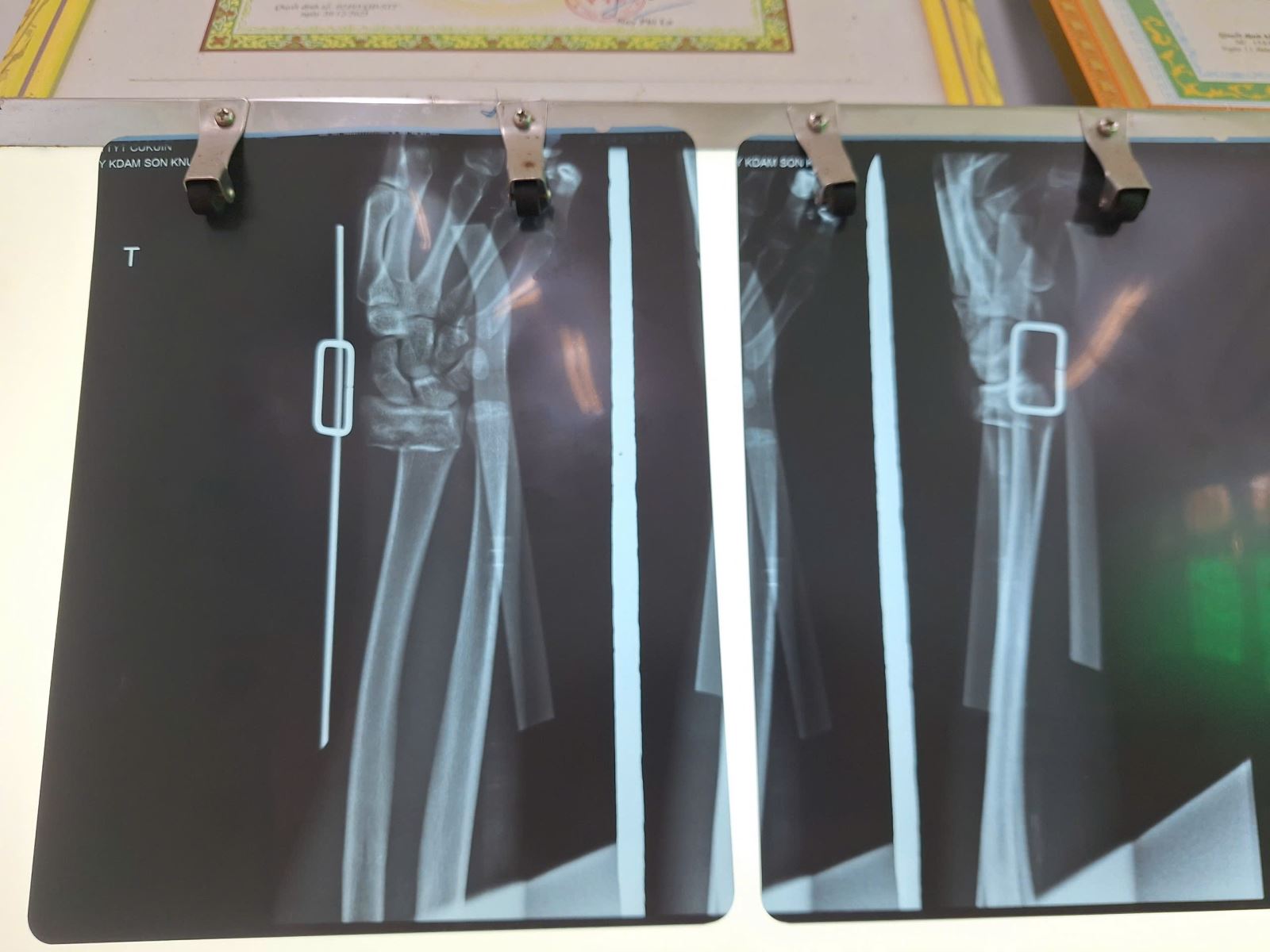 Ngày 7/4/2026 bệnh nhân nam Y.K.S.KL, sinh năm 2009, Buôn Jung B, xã Ea Ktur, Đắk Lắk vào viện với lý do ngã từ độ cao khoảng 3 mét . Bệnh nhân được đón tiếp, thăm khám ngay. Bác sĩ Trịnh Đức Lam, PGĐ trung tâm y tế Cư Kuin trực tiếp khám lâm sàng, chỉ định cận lâm sàng có kết quả. Chẩn đoán: Bệnh nhân gãy kín đầu dưới xương quay trái, trật khớp quay trụ dưới trái + gãy kín xương thuyền trái do tai nạn sinh hoạt.