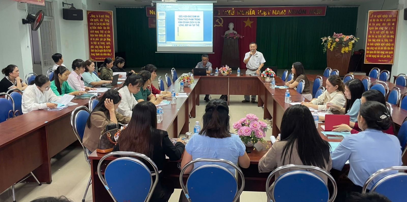 Tại các lớp tập huấn, học viên được nghe phổ biến, hướng dẫn và trao đổi về các văn bản quy phạm pháp luật hiện hành, gồm: Luật An toàn thực phẩm ngày 17/6/2010; Nghị định số 15/2018/NĐ-CP ngày 02/02/2018 của Chính phủ quy định chi tiết thi hành một số điều của Luật An toàn thực phẩm; Nghị định số 155/2018/NĐ-CP ngày 12/11/2018 của Chính phủ sửa đổi, bổ sung một số quy định liên quan đến điều kiện đầu tư kinh doanh thuộc phạm vi quản lý nhà nước của Bộ Y tế; Nghị định số 43/2017/NĐ-CP ngày 14/4/2017 của Chính phủ về nhãn hàng hóa; Nghị định số 111/2021/NĐ-CP ngày 09/12/2021 của Chính phủ sửa đổi, bổ sung một số điều Nghị định số 43/2017/NĐ-CP ngày 14 tháng 4 năm 2017 của Chính phủ về nhãn hàng hóa; Nghị định số 115/2018/NĐ-CP ngày 04/9/2018 của Chính phủ quy định về hành vi, thẩm quyền xử phạt vi phạm hành chính về an toàn thực phẩm; Nghị định số 124/2021/NĐ-CP ngày 28/12/2021 của Chính phủ sửa đổi, bổ sung một số điều của Nghị định số 115/2018/NĐ-CP ngày 04 tháng 9 năm 2018 của Chính phủ quy định xử phạt vi phạm hành chính về an toàn thực phẩm và Nghị định số 117/2020/NĐ-CP ngày 28 tháng 9 năm 2020 của Chính phủ quy định xử phạt vi phạm hành chính trong lĩnh vực y tế; Quyết định số 1246/QĐ-BYT ngày 31/3/2017 của Bộ trưởng Bộ Y tế về việc ban hành “Hướng dẫn thực hiện chế độ kiểm thực ba bước và lưu mẫu thức ăn đối với cơ sở kinh doanh dịch vụ ăn uống”; Quyết định số 75/QĐ-ATTP ngày 27/3/2024 của Cục an toàn thực phẩm về việc ban hành bộ câu hỏi đánh giá kiến thức, thực hành về an toàn thực phẩm cho chủ cơ sở, người trực tiếp sản xuất, kinh doanh thực phẩm thuộc thẩm quyền quản lý của Bộ Y tế và đáp án trả lời.
