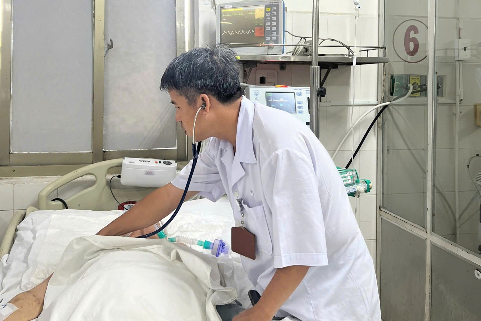Thầy thuốc Ưu tú, bác sĩ CKII Lê Hòa thăm khám cho bệnh nhân.