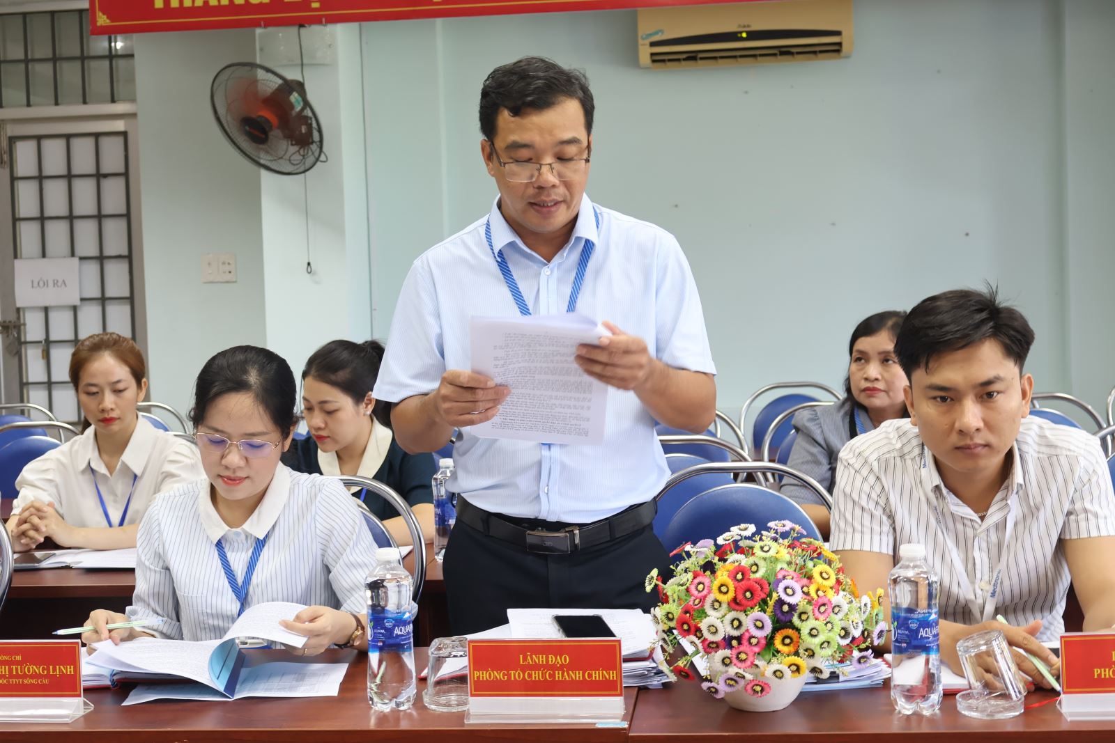 Đại diện Trung tâm Y tế Sông Cầu báo cáo kết quả công tác cải cách hành chính.