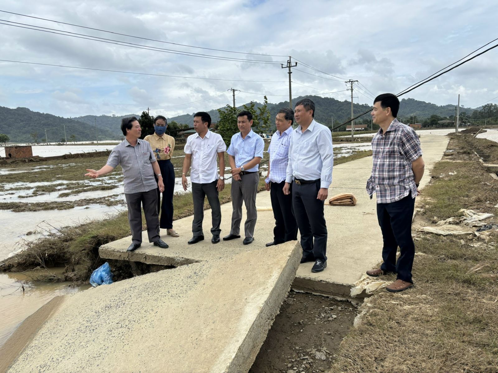 Tổ công tác kiểm tra mức độ thiệt hại do lũ gây ra tại xã Dul Kmăl.
