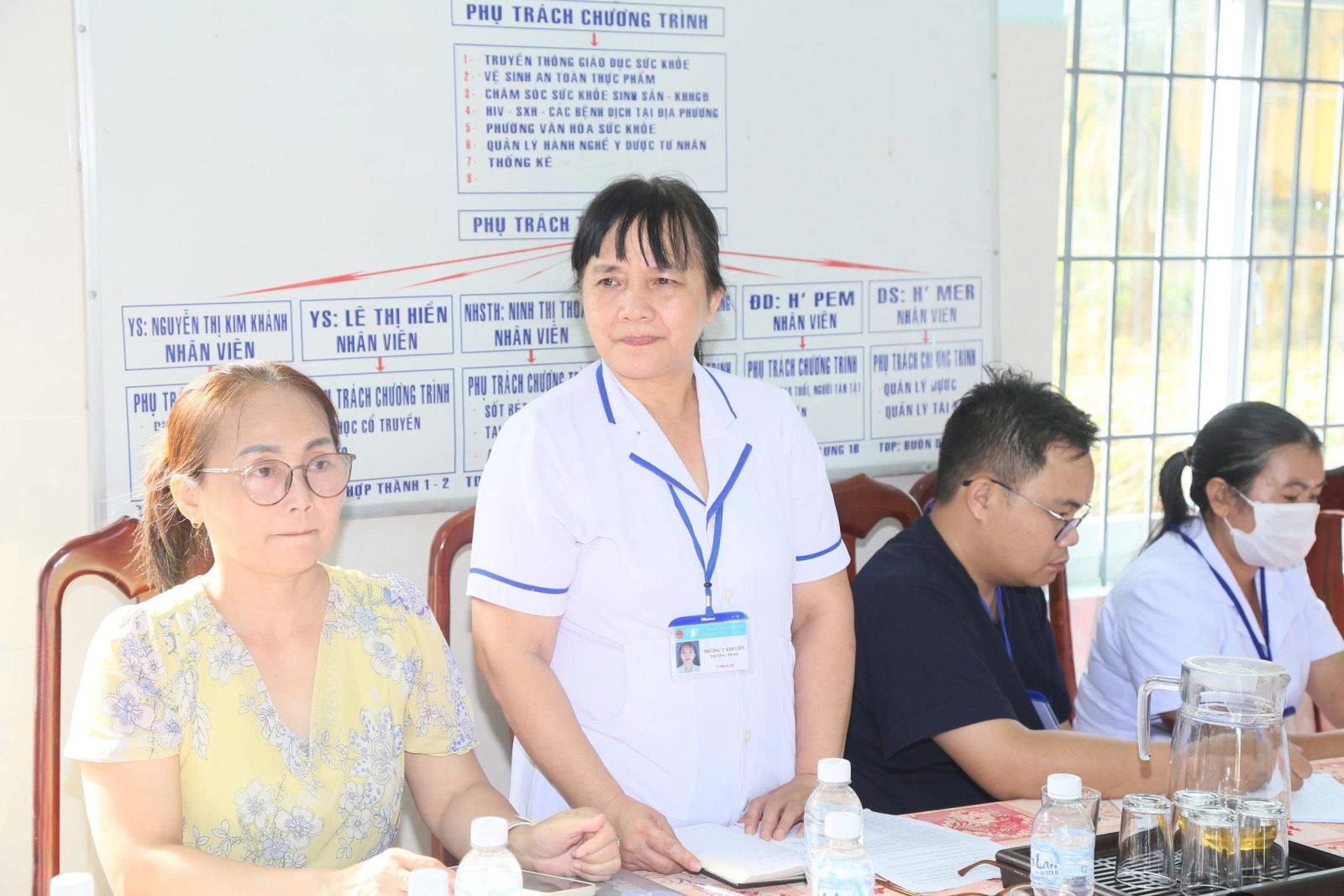 Bà Trương Thị Kim Liên, Trưởng Trạm Y tế Thống Nhất phát biểu tại buổi làm việc với Đoàn.