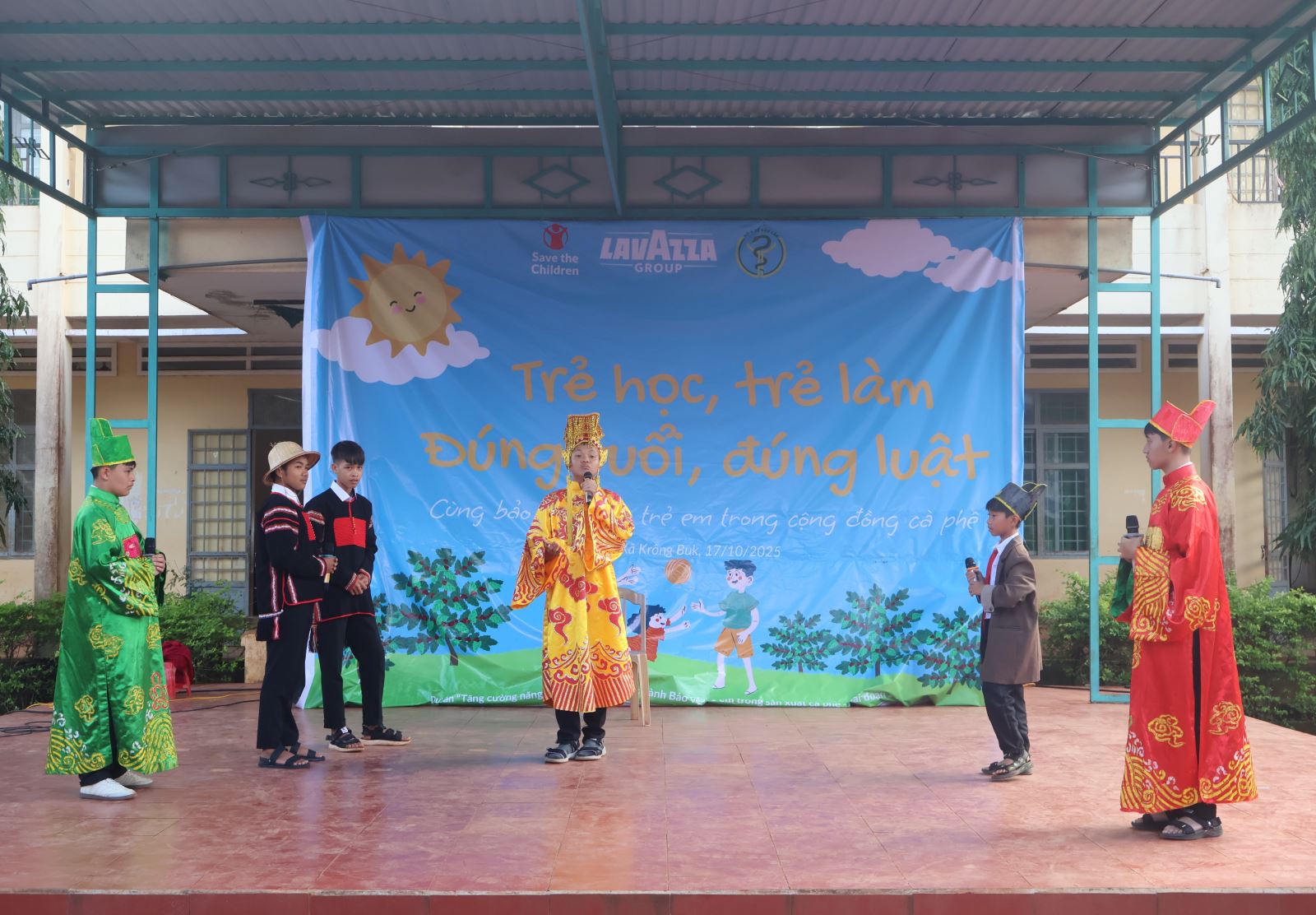 Chiều ngày 17/10/2025, tại trường Trung học cơ sở Phan Chu Trinh, xã Krông Búk đã diễn ra buổi truyền thông “Trẻ học, trẻ làm, đúng tuổi, đúng quy định” với chủ đề “Chung tay phòng chống lao động sớm ở trẻ em”. Chương trình thu hút sự tham gia hào hứng của hơn 950 học sinh từ khối lớp 6 đến khối lớp 9; cùng đại diện Tổ chức Save the Children (Tổ chức cứu trợ trẻ em) tại Việt Nam, Phòng Bảo trợ xã hội (Sở Y tế), UBND xã Krông Búk, Ban giám hiệu, các thầy, cô giáo và phụ huynh học sinh.