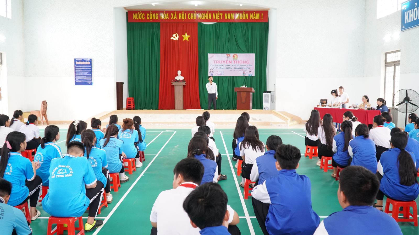 Quang cảnh buổi truyền thông trực tiếp về chăm sóc sức khỏe sinh sản vị thành niên, thanh niên tại trường THCS Hồ Tùng Mậu- xã Eawer.