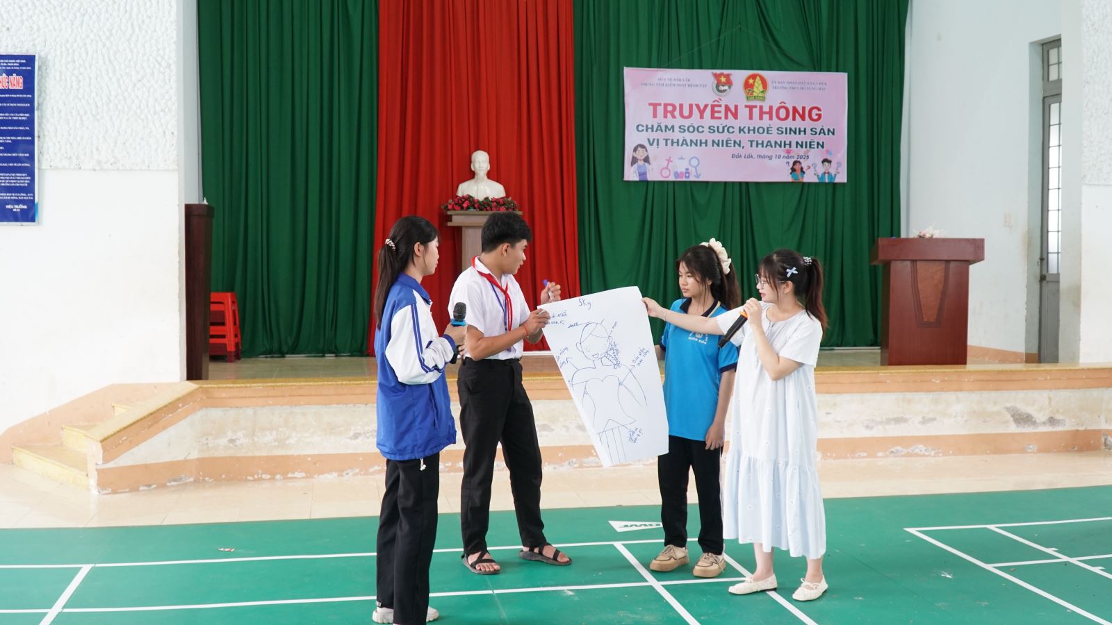 Sáng ngày 28/10/2025, Trung tâm kiểm soát bệnh tật đã phối hợp với trường Trung học cơ sở (THCS) Hồ Tùng Mậu - xã Eawer tổ chức buổi truyền thông trực tiếp về chăm sóc sức khỏe sinh sản vị thành niên, thanh niên cho hơn 100 học sinh trong nhà trường.