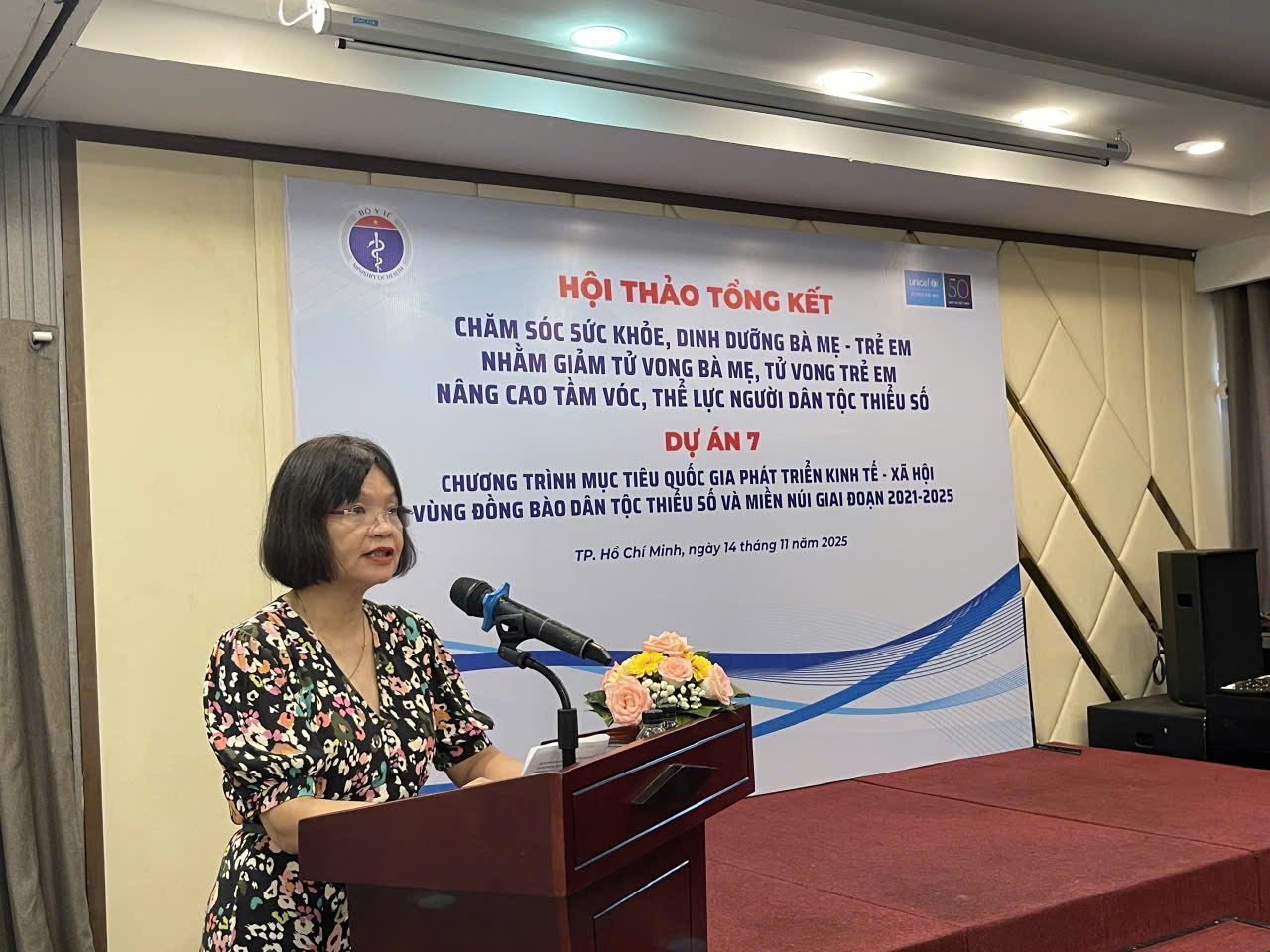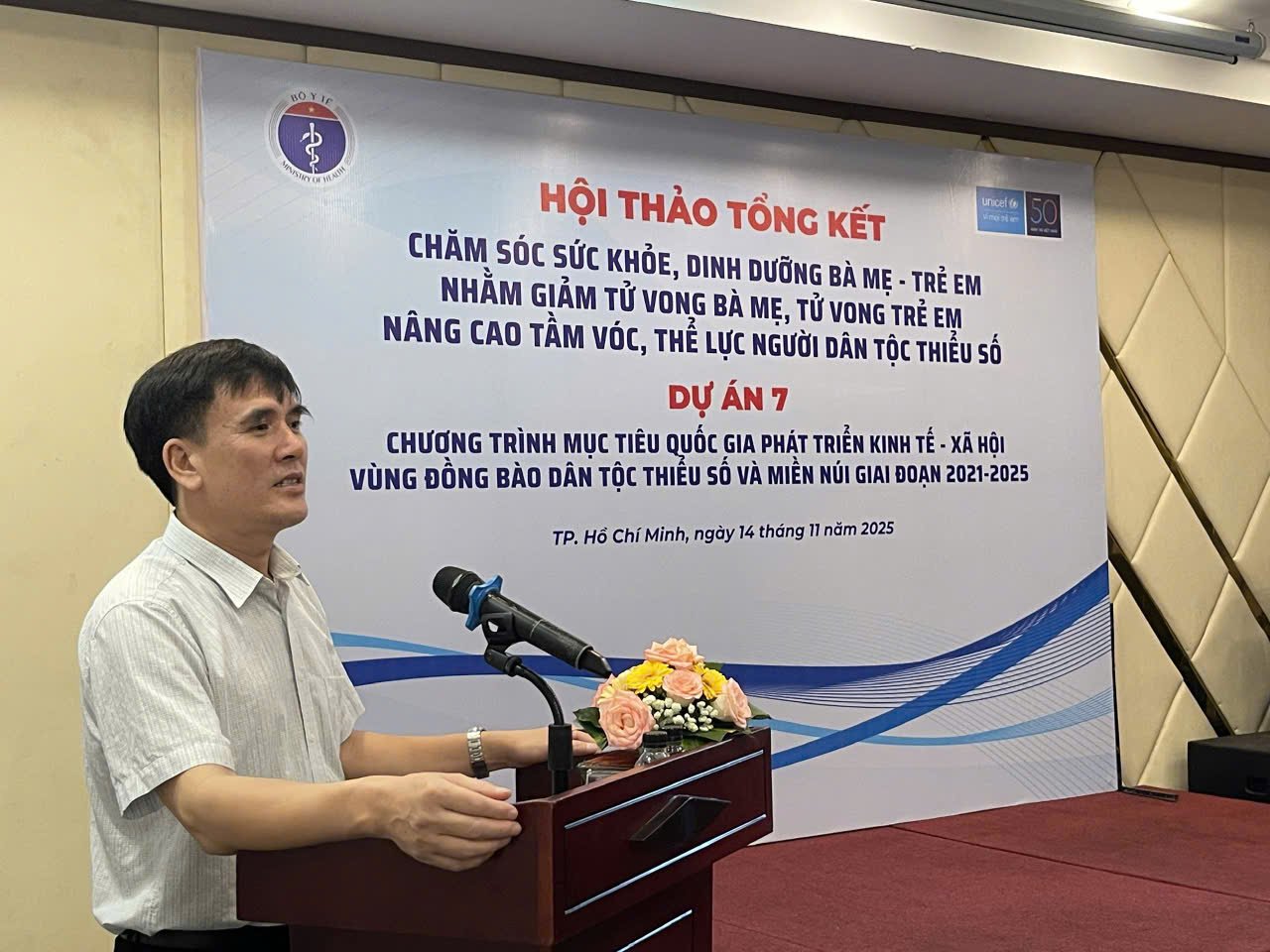 Ngày 14/11/2025 tại TP. Hồ Chí Minh, Cục Bà mẹ và Trẻ em (Bộ Y tế) phối hợp cùng UNICEF tổ chức Hội thảo “Tổng kết hoạt động chăm sóc sức khỏe, dinh dưỡng bà mẹ – trẻ em nhằm giảm tử vong mẹ, tử vong trẻ em, nâng cao tầm vóc, thể lực người dân tộc thiểu số giai đoạn 2021–2025”. Hội thảo thu hút sự tham dự của đại diện các bộ, ngành, tổ chức quốc tế, lãnh đạo Sở Y tế và Trung tâm Kiểm soát bệnh tật (CDC) nhiều tỉnh thành.