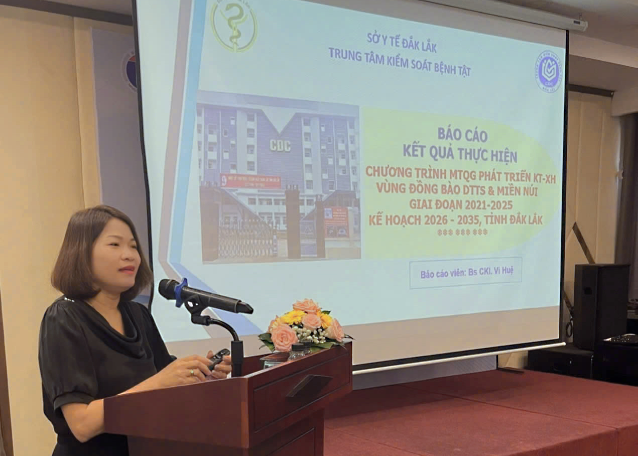 Đại diện CDC Đắk Lắk báo cáo tại Hội thảo.