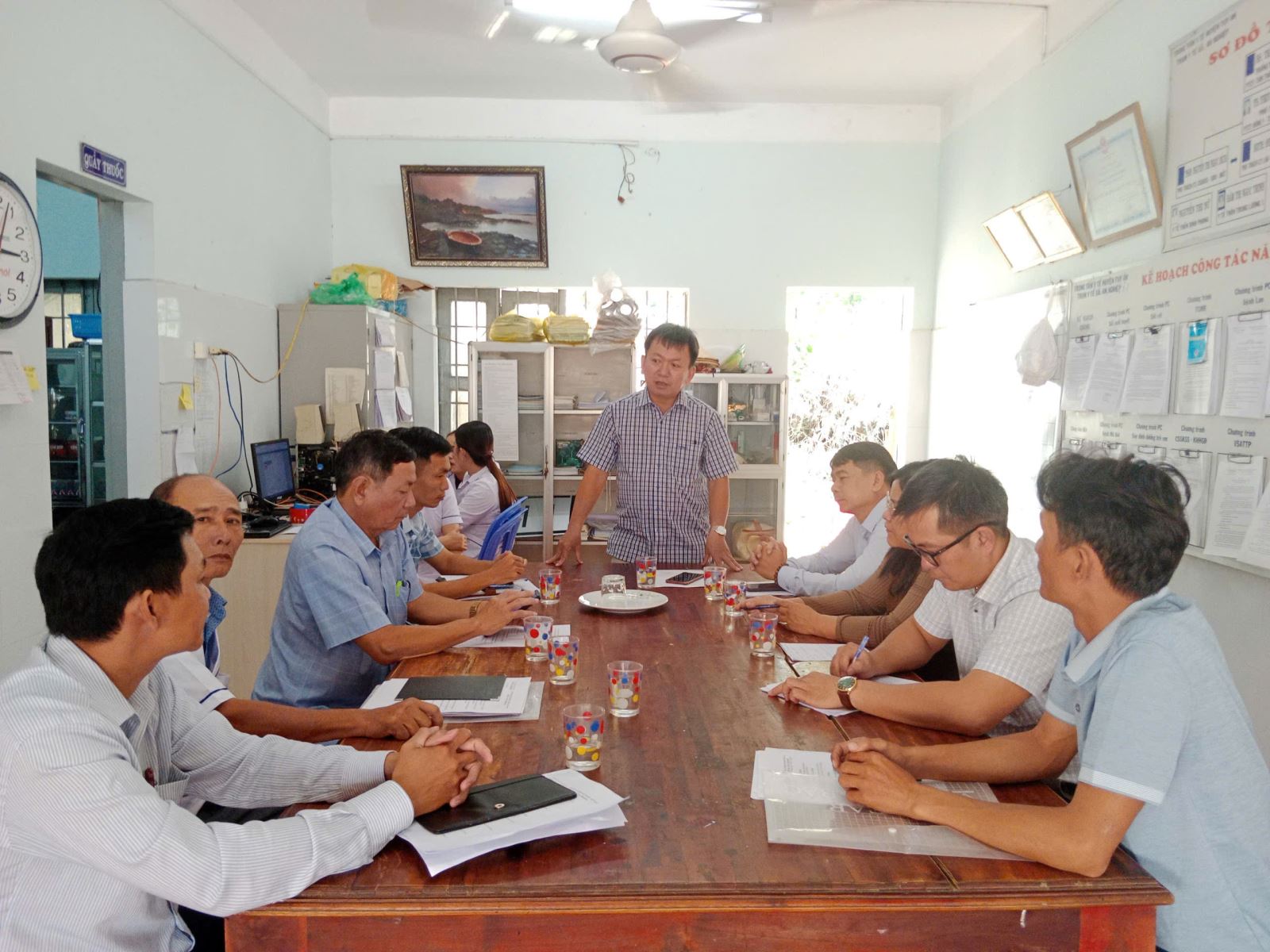 THs.BS. Huỳnh Lê Xuân Bích - PGĐ Sở Y tế ghi nhận và động viên nhân viên các trạm y tế tiếp tục tăng cường công tác tuyên truyền sử dụng nước sạch, vệ sinh môi trường và hướng dẫn các biện pháp phòng, chống dịch bệnh sau bão lũ, nhất là cách phòng chống các dịch bệnh đau mắt đỏ, tiêu chảy, sốt xuất huyết, tay chân miệng và các bệnh ngoài da… đến với nhân dân; đảm bảo công tác khám, chữa bệnh, tiêm chủng mở rộng và vệ sinh môi trường sau bão. Ông cũng đề nghị lãnh đạo địa phương quan tâm, hỗ trợ Trạm y tế trong công tác phòng chống dịch bệnh sau lũ, có cơ chế hỗ trợ phù hợp cho công tác phòng chống dịch bệnh.
