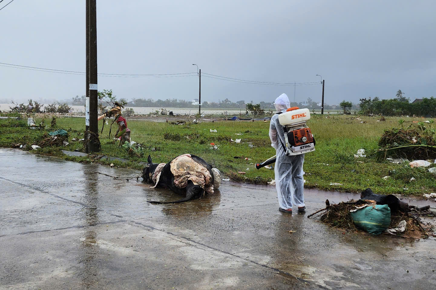 Xác trâu, bò và gia súc bị chết là nguồn ô nhiễm nguy hiểm, có thể phát tán vi khuẩn gây bệnh và làm gia tăng nguy cơ dịch bệnh sau bão.