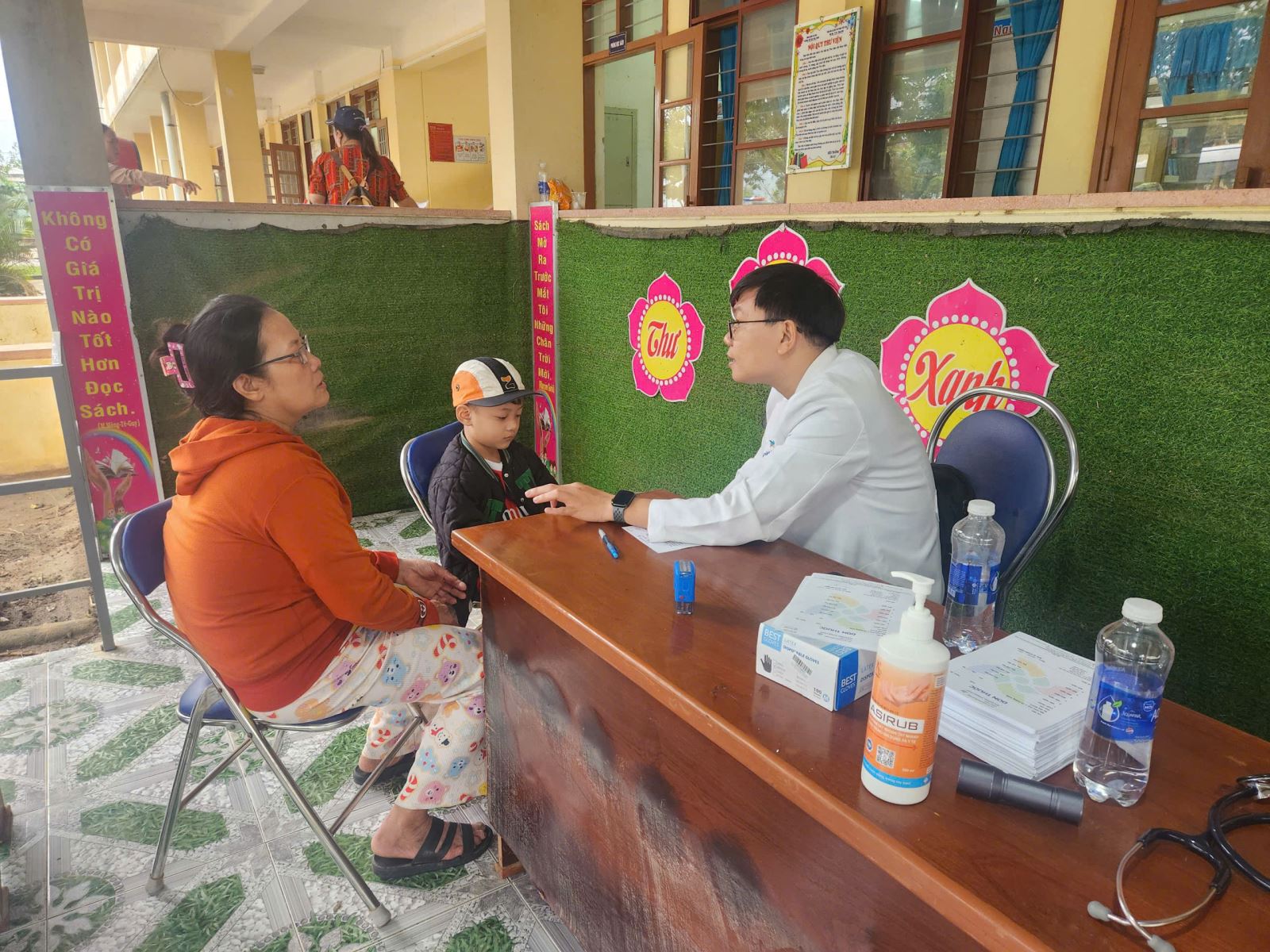 Khám sức khỏe cho người già và trẻ em ở xã Hòa Thịnh.