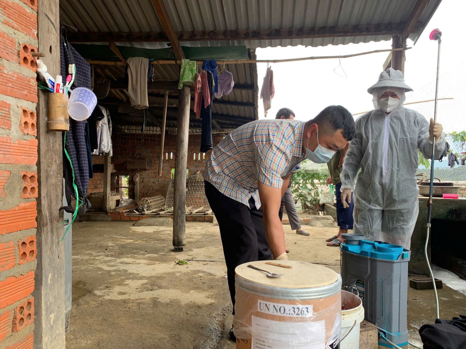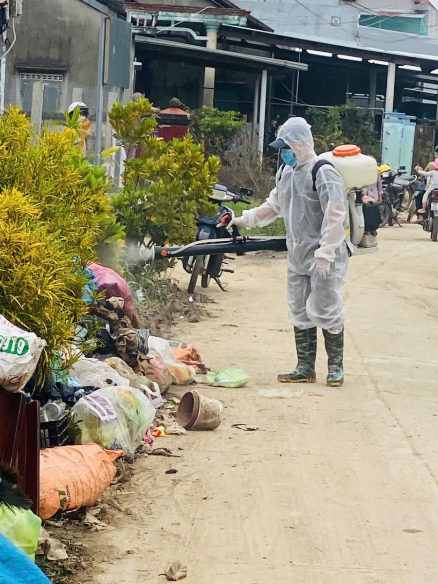 Nhân viên y tế phun khử khuẩn vệ sinh môi trường...