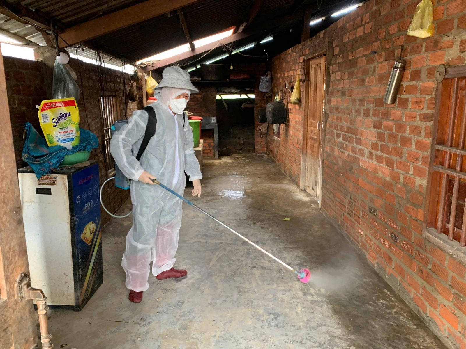 Cán bộ Trung tâm Kiểm soát bệnh tật tỉnh Đắk Lắk phun khử khuẩn, vệ sinh môi trường sau lũ lụt.
