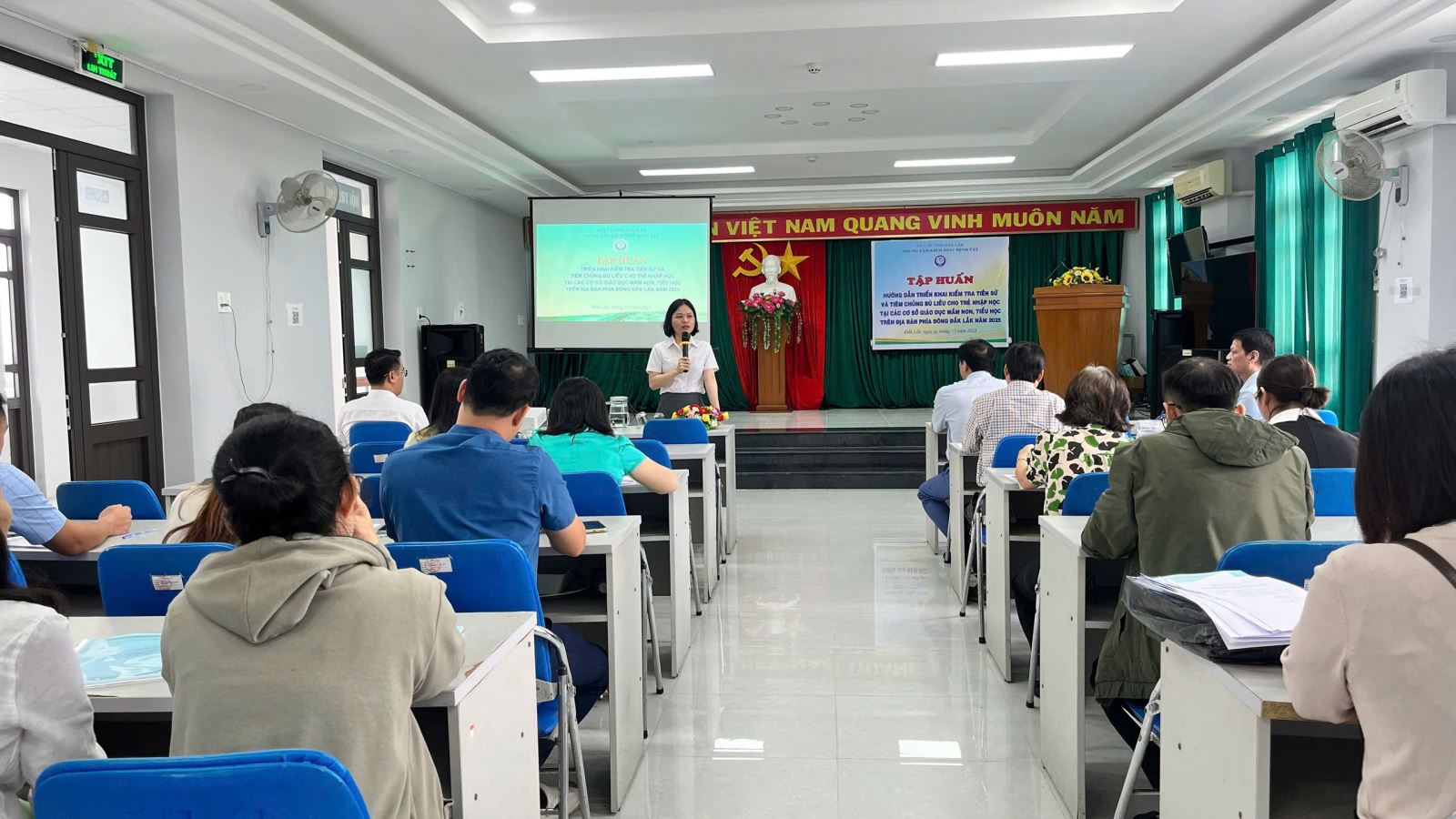 Trung tâm Kiểm soát bệnh tật tổ chức các lớp tập huấn về kiểm tra tiền sử tiêm chủng tại trường học cho giáo viên và cán bộ y tế tại các xã thuộc khu vực phía Đông tỉnh Đắk Lắk. Ảnh: Hải Trung