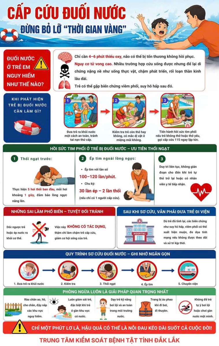 Đuối nước là tình trạng cấp cứu cực kỳ nguy hiểm, diễn tiến rất nhanh. Chỉ sau 4–6 phút thiếu oxy, não có thể bị tổn thương không hồi phục